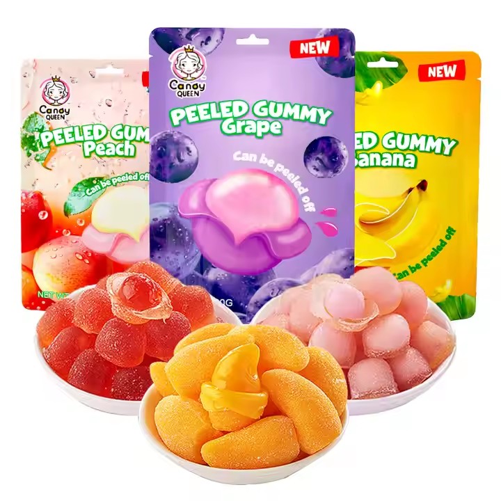 Fruit Peelable Candy Sweets Halal Assorted Fruits 3d Jelly Soft Peeling Gummy Candy Bonbons Wholesal